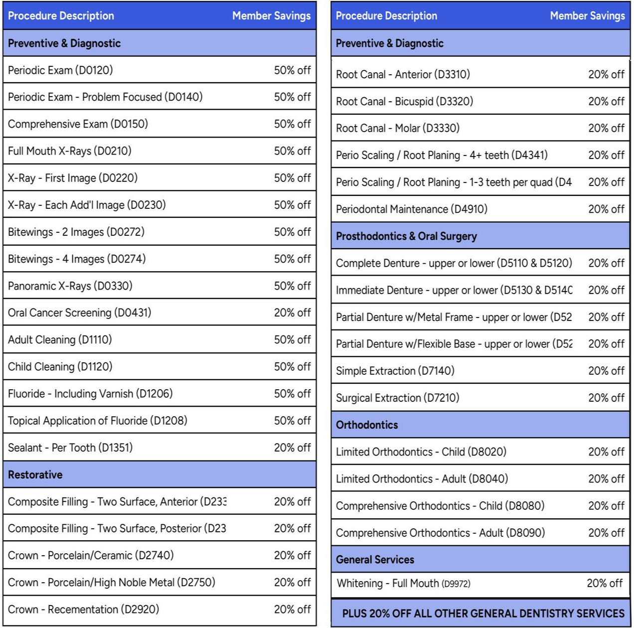 Dental membership plan(s) described herein are NOT INSURANCE. Plan members pay periodic membership fees in exchange for access to discounts on certain identified services rendered by participating providers in accordance with the plan fee schedule.